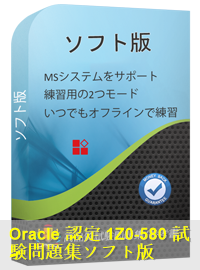 1Z0-580問題集だけで勉強し、先日1Z0-580試験に合格しました。模擬試験のソフトも、1Z0-580試験の形式とほぼ同じで非常に役に立つと思います。ありがとうございました。
