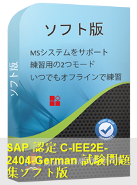 お客様にはさまざまなニーズを持っていることを考慮し、弊社は利用可能なC_IEE2E_2404 Deutschテスト問題セットを3つのバージョンで提供いたします--- PDF版、PCテストエンジン版とオンラインテストエンジン版。 最も有利なのが唯一サンプルを持つ--- Q&A形式のPDF版を無料でダウンロードできます。 こちらのバージョンはC_IEE2E_2404 Deutsch試験準備に印刷可能で、ダウンロードすることが簡単にできます。つまり、いつでもどこでも勉強することができます。 PC版のC_IEE2E_2404 Deutsch試験問題は実際の試験環境でリアル体験ができ、MSオペレーティングシステムをサポートします。これは試験のために勉強するためのより実用的な方法です。 さらに、C_IEE2E_2404 Deutsch試験対策のオンラインテストエンジンは、ほとんどのユーザーがスマホ、タブレットでAPPを学習操作することに慣れているため、ほとんどの受験者の間で高い期待を寄せているようです。 それぞれのバージョンが同じ内容であることを保証します。お客様は自分が便利だと思うバージョンをお選びください。