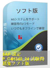 お客様にはさまざまなニーズを持っていることを考慮し、弊社は利用可能なP_C4H340_24テスト問題セットを3つのバージョンで提供いたします--- PDF版、PCテストエンジン版とオンラインテストエンジン版。 最も有利なのが唯一サンプルを持つ--- Q&A形式のPDF版を無料でダウンロードできます。 こちらのバージョンはP_C4H340_24試験準備に印刷可能で、ダウンロードすることが簡単にできます。つまり、いつでもどこでも勉強することができます。 PC版のP_C4H340_24試験問題は実際の試験環境でリアル体験ができ、MSオペレーティングシステムをサポートします。これは試験のために勉強するためのより実用的な方法です。 さらに、P_C4H340_24試験対策のオンラインテストエンジンは、ほとんどのユーザーがスマホ、タブレットでAPPを学習操作することに慣れているため、ほとんどの受験者の間で高い期待を寄せているようです。 それぞれのバージョンが同じ内容であることを保証します。お客様は自分が便利だと思うバージョンをお選びください。