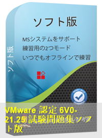 お客様にはさまざまなニーズを持っていることを考慮し、弊社は利用可能な6V0-21.25テスト問題セットを3つのバージョンで提供いたします--- PDF版、PCテストエンジン版とオンラインテストエンジン版。 最も有利なのが唯一サンプルを持つ--- Q&A形式のPDF版を無料でダウンロードできます。 こちらのバージョンは6V0-21.25試験準備に印刷可能で、ダウンロードすることが簡単にできます。つまり、いつでもどこでも勉強することができます。 PC版の6V0-21.25試験問題は実際の試験環境でリアル体験ができ、MSオペレーティングシステムをサポートします。これは試験のために勉強するためのより実用的な方法です。 さらに、6V0-21.25試験対策のオンラインテストエンジンは、ほとんどのユーザーがスマホ、タブレットでAPPを学習操作することに慣れているため、ほとんどの受験者の間で高い期待を寄せているようです。 それぞれのバージョンが同じ内容であることを保証します。お客様は自分が便利だと思うバージョンをお選びください。